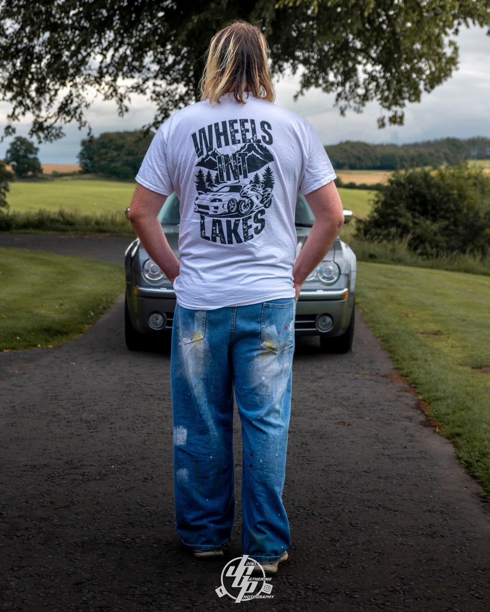 High-quality and extremely durable, cotton t-shirt with front Wheels Int Lakes Logo and large rear lakes, car & bike logo.
